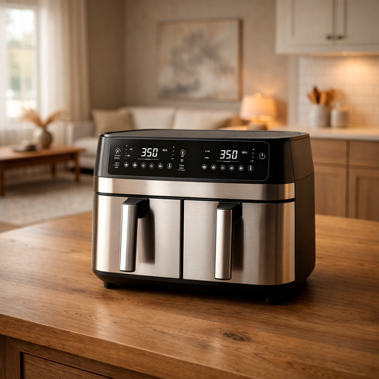 Fritadeira de Acero Inoxidable con Medidor de Temperatura y Escurridor Incorporado + Kit de Utensilios de Cocina
